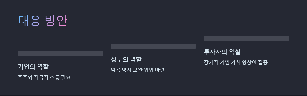 반면, 피해가 예상되는 기업은 중소·중견기업과 비상장 가족기업들일 것입니다. 비용 부담 증가와 경영권 불안정성이 커지기 때문입니다. 특히 내부 통제가 약하거나 지배구조가 불투명한 기업들은 사모펀드나 외부 투기 자본의 표적이 될 수 있습니다.