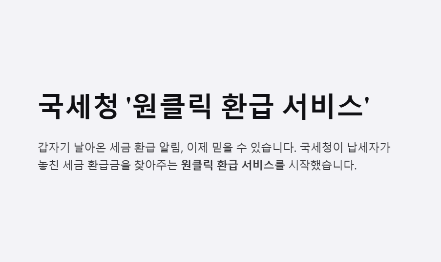 국세청이 **납세자가 놓친 세금 환급금을 찾아주는 '원클릭 환급 서비스'**를 본격 시작했습니다.