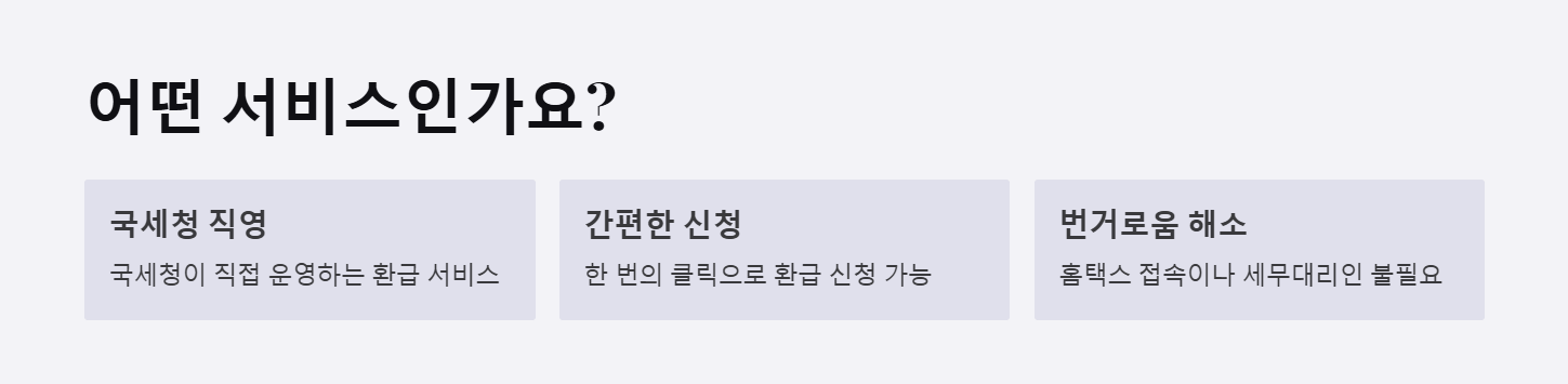 민간 환급 대행 서비스에서 수수료를 떼이거나 개인정보를 요구하는 일이 많아 꺼리셨던 분들이라면, 이번 국세청의 새로운 환급 서비스는 좋은 소식이 될 수 있습니다.