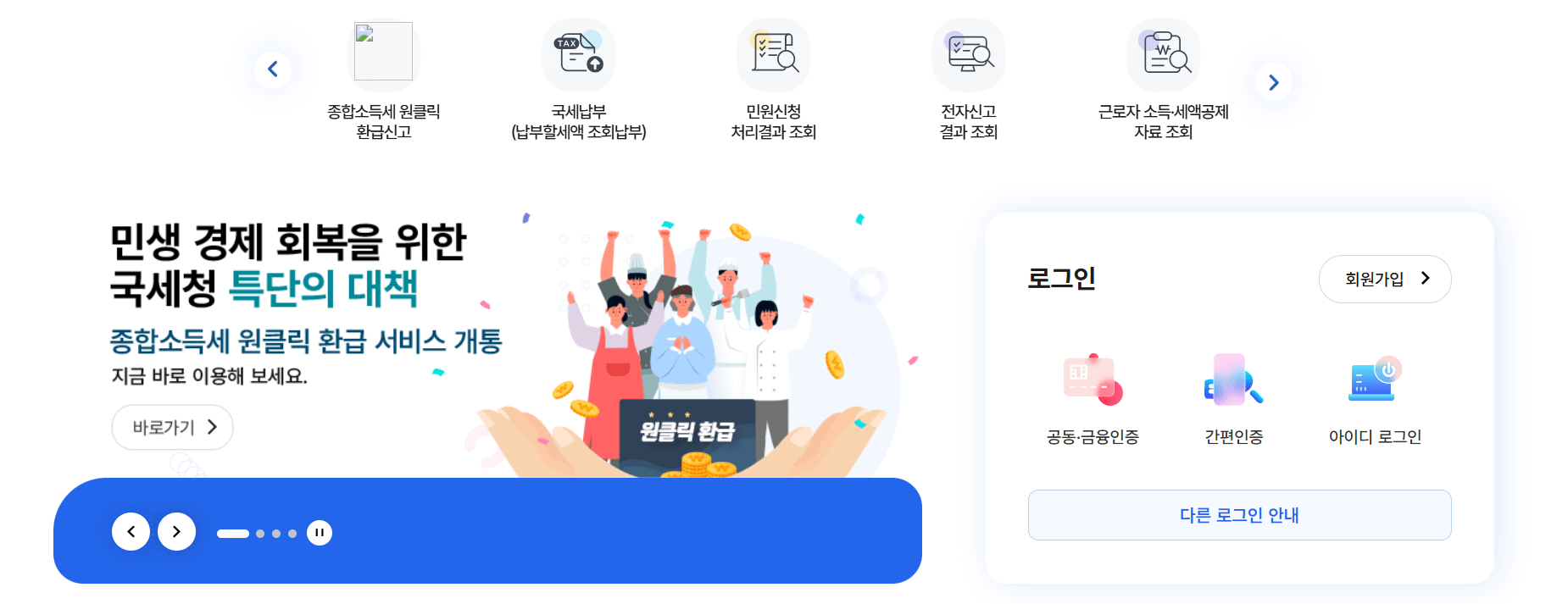 - 홈택스에서 클릭 한 번으로 환급 신청 가능